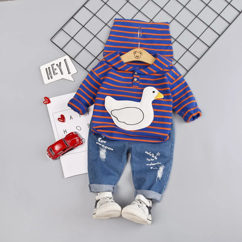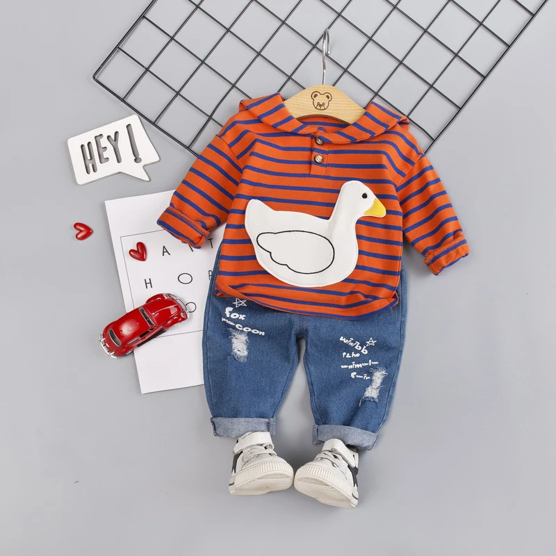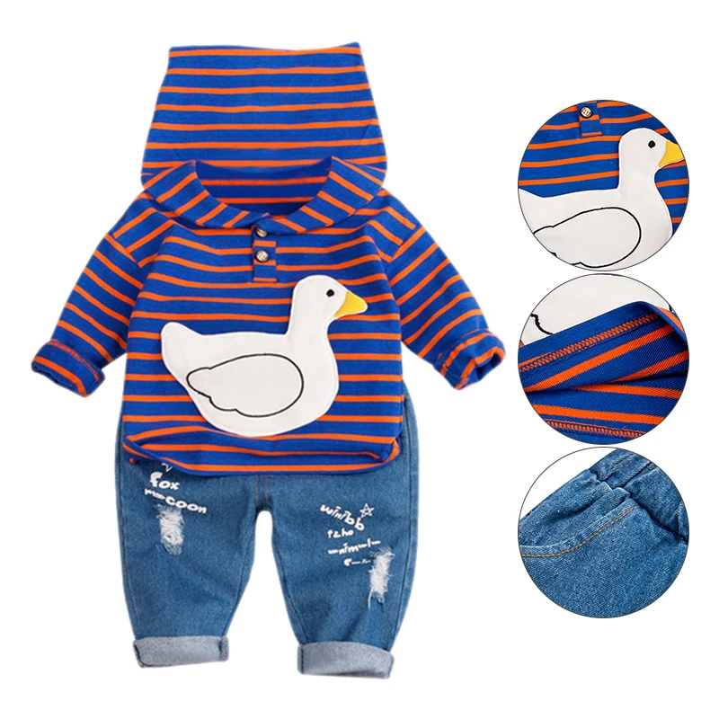 Buy Baby Boy Clothes 0-4T Fashion Trend Cartoon Duck Striped Print Toddler Boy Sets Hoodie Jeans 2 Piec Right Here and Right Now Just for USD US $12.60, Price will be rise up at any time without notification and I cant guaranted that the stock is still available tommorow or next hour. So Please Save It Now!