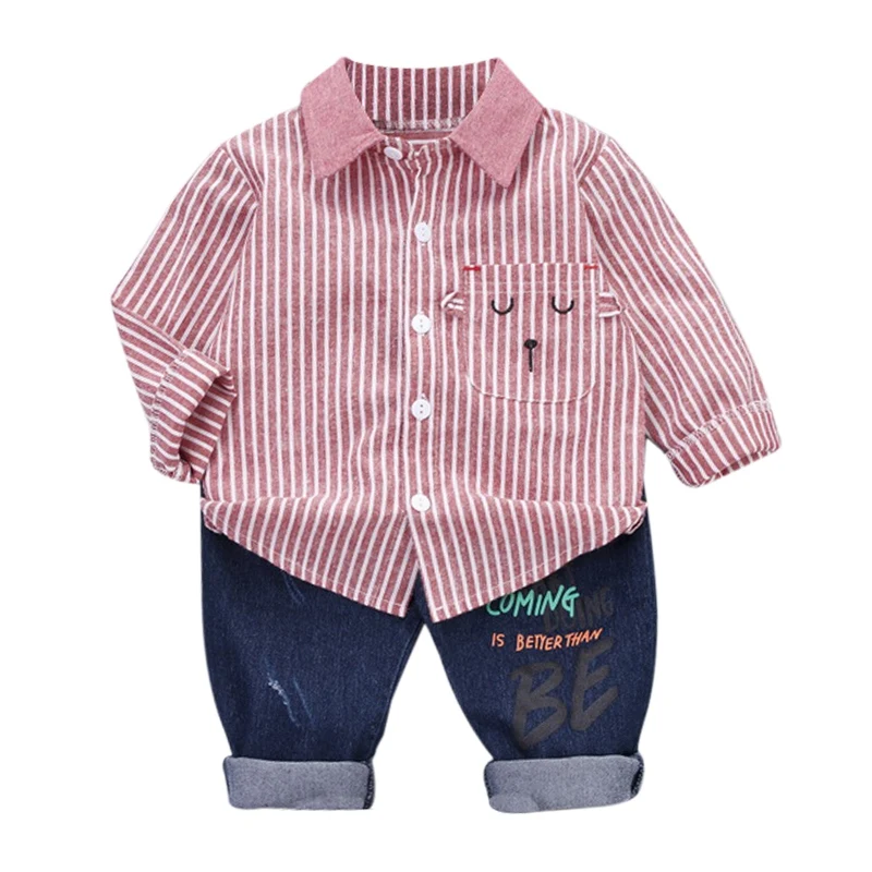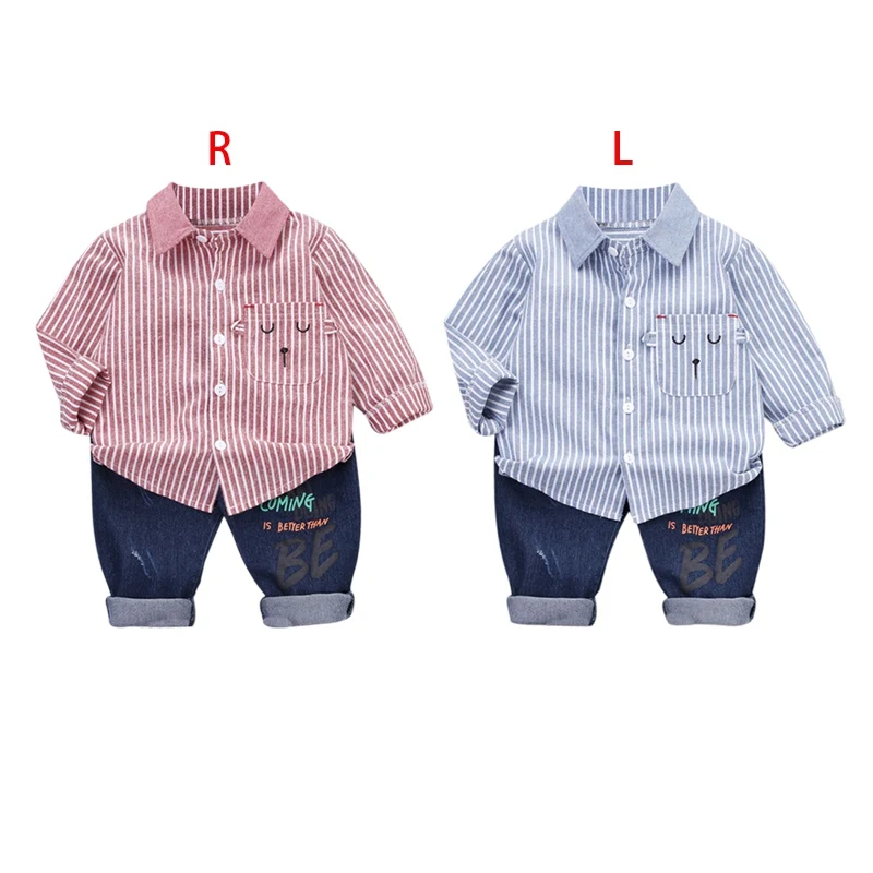 Best Price of Cute Clothing Baby Boy Clothes Casual Striped Shirt+Jeans Baby Set Child Kids Costume For Boys Todd